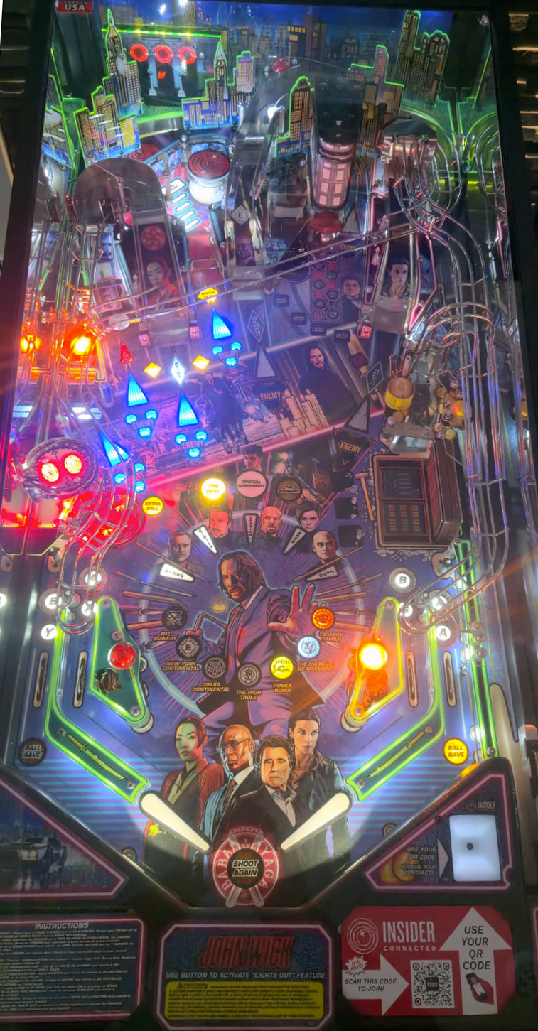 Dans ce pinball, le joueur devient John Wick lui-même : poursuites, tirs, assassins à éliminer, armes à récupérer, contrats à remplir… chaque partie est une mission où tout peut basculer. L’univers visuel et sonore reprend les lieux iconiques des films comme le New York Continental Hotel ou le Red Circle Club, sublimés par une skyline découpée par un éclairage néo-noir saisissant.